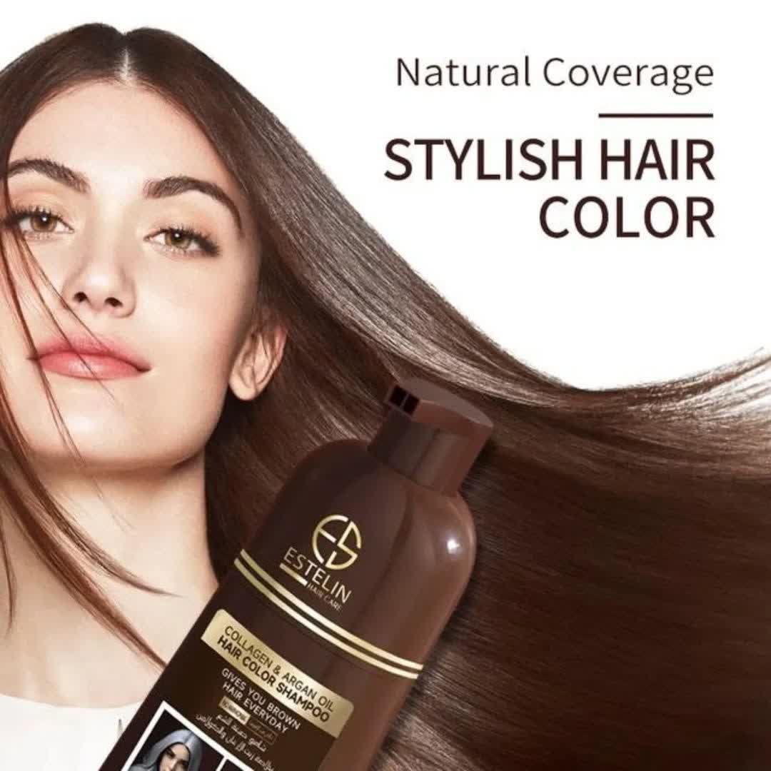 شامپو رنگ قهوه ای کلاژن و روغن آرگان استلین